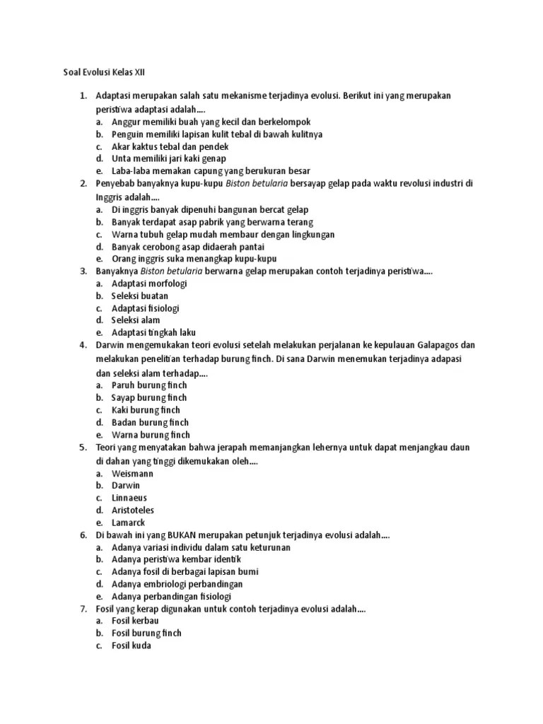 Evolusi makhluk hidup dari sudut pandang evolusi biologis masih banyak yang debatable. Persiapan kuliah optimal dengan ratusan kelas utbk. Uji pemahaman materimu dengan soal hots & analisa. Unduh sebagai docx, pdf, txt atau baca online dari scribd. Darwin menyatakan bahwa evolusi terjadi karena adanya seleksi . Pengembangan modul biologi materi evolusi kelas xii disertai tipe soal hots dengan model pembelajaran cooperative learning tipe students team achievement . Evolusi merupakan cabang biologi yang memelajari sejarah asal usul makhluk hidup dan keterkaitan genetik. Menurut lamarck, faktor yang berpengaruh pada evolusi organ adalah …. Pertanyaan yang ditanyakan pada soal h i s. Yuk, perdalam pengetahuanmu dengan kumpulan soal biologi di artikel ini. Mampu memahami sejarah perkembangan teori evolusi makhluk hidup dan mampu bekerjasama dalam tim. Menganalisis hubungan antara komponen ekosistem, perubahan materi dan energi serta peran manusia dalam keseimbangan ekosistem. Beliau pun pernah bekerja dengan lyell .